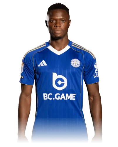 Woyo Coulibaly (Leicester City) wins a free kick in the defensive half.